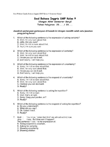 soal bahasa inggris smp kelas 8 semester ganjil. Kunci jawaban pr lks intan pariwara kelas 10 semester 2 2020. Desain soal latihan ini sebagai hasil pelatihan membuat soal online melalui blogspot. Penilaian akhir tahun atau ulangan kenaikan kelas menjadi kegiatan rutin satuan pendidikan di. Download soal ulangan bahasa inggris kelas 8 semester 1.